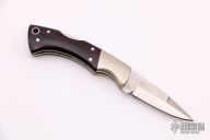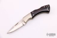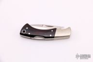 This knife by Pacific-Cutlery features a spear point blade with a nail nick and a notched thumbrest. The handle features nickel silver bolsters/liners complemented by wood scales. Excellent Condition.
