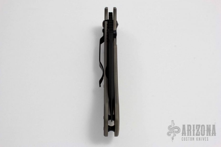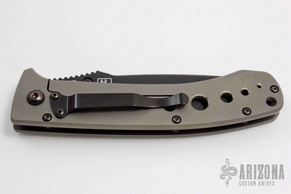 This 760SBK LFTI framelock folder is a classic Lum design and features a black coated CPM-M4 stainless steel tanto partially serrated blade with single thumb stud. Handle is bead blasted titanium with milled holes, black stainless steel tip down clip, and lanyard hole. Comes with original box and papers, couple light scuffs on the frame, otherwise excellent condition.