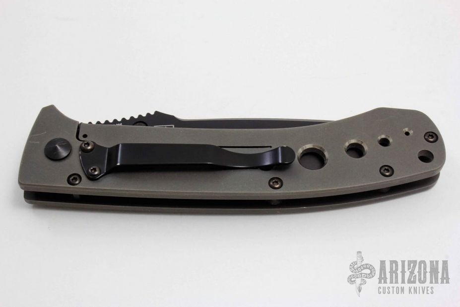 This 760BK LFTI framelock folder is a classic Lum design and features a black coated CPM-M4 stainless steel tanto blade with single thumb stud. Handle is bead blasted titanium with milled holes, black stainless steel tip down clip, and lanyard hole. Comes with original box and papers, excellent+ condition.