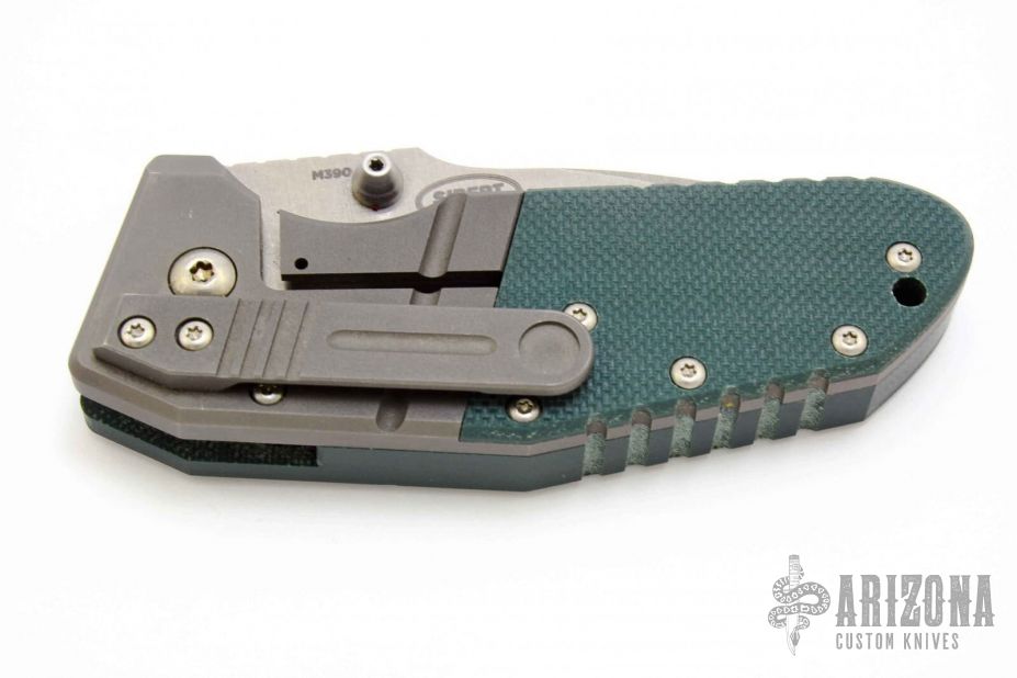"A stout titanium monolock designed by Shane Sibert. Overbuilt? Absolutely! Titanium mono-lock mechanism Tactical drop-point blade with ambidextrous thumb-stud opener M390 super steel blade (60-62HRC) Titanium and G10 handles with titanium tip-down carry clip"Excellent condition in original box Blade Steel: M390 Stainless Steel