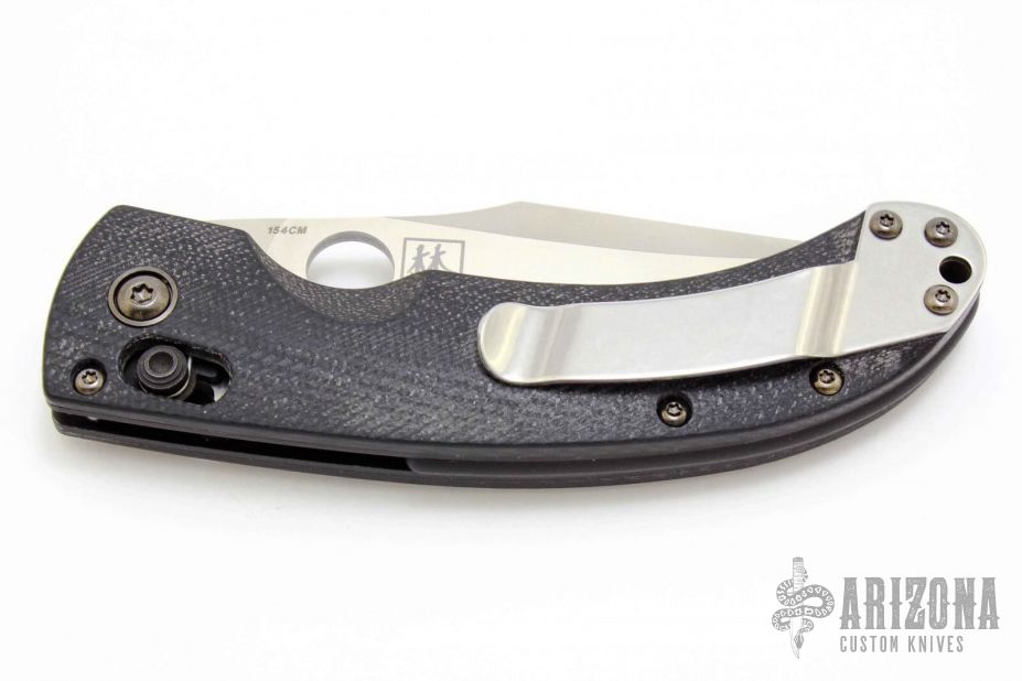 The Benchmade 746 Mini Onslaught is a smaller version of the original Bob Lum designed 741. Features a clip point blade crafted from CPM154 steel and given a satin finish. The blade has a round hole opener for easy access of the blade with either hand. Black G-10 scales, black stainless steel liners, and a tip up stainless steel clip. The very strong and completely ambidextrous axis lock makes this knife the complete package. A removable pocket clip is attached for tip-up right-handed carry. Comes with original box and papers. Knife is in excellent condition, shows no signs of use/carry.