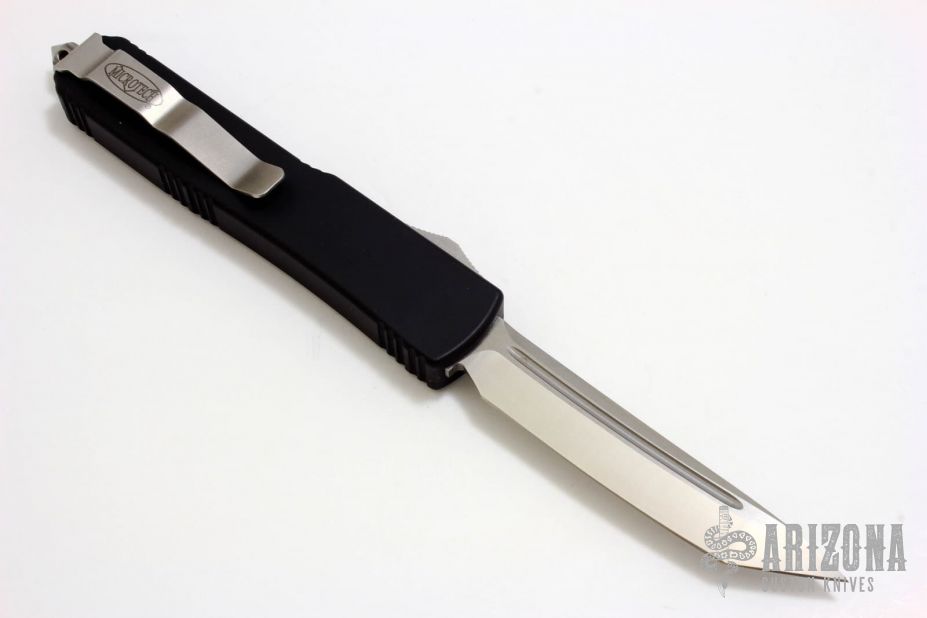 This Ultratech OTF automatic features a T/E satin finish tanto blade with a standard edge. Stainless steel clip. Glass breaker. Serial number 39050 and dated 09/2013. Has some light scuffs, good condition.