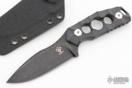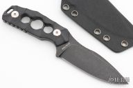 This Falcon II by GE Chen features a black stonewash finished drop point blade with notched thumbrest, .170" blade stock and 1.138" blade depth, full tang construction. Has a CPM 3V blade that has been vacuum heat treated, and 3 times tempered with cryo, 59-60HRC. The handle has black G-10 scales with lanyard hole at the butt. Comes with a kydex sheath set up for TekLok. Comes with original box. New from maker. #045/100