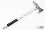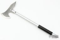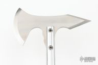 This Tomahawk from Juergen Schanz features a satin finish blade crafted from Niolox steel. The handle is comprised of aircraft aluminum with cancas micarta grip and stainless steel spike on pommel. 22" overall length. New from maker. Blade Steel: Niolox