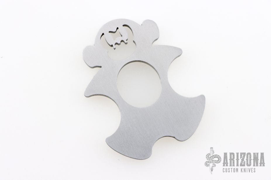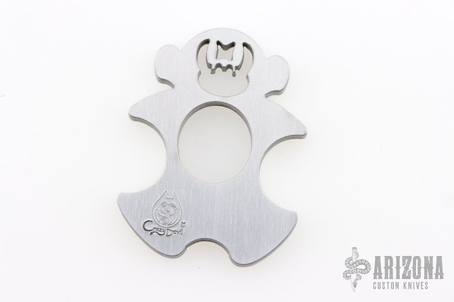 The Monkey by Crazy Devil is made from T6 Aircraft Aluminum that is 1/4" thick. It is 3" tall and 2.5" deep. New from maker.