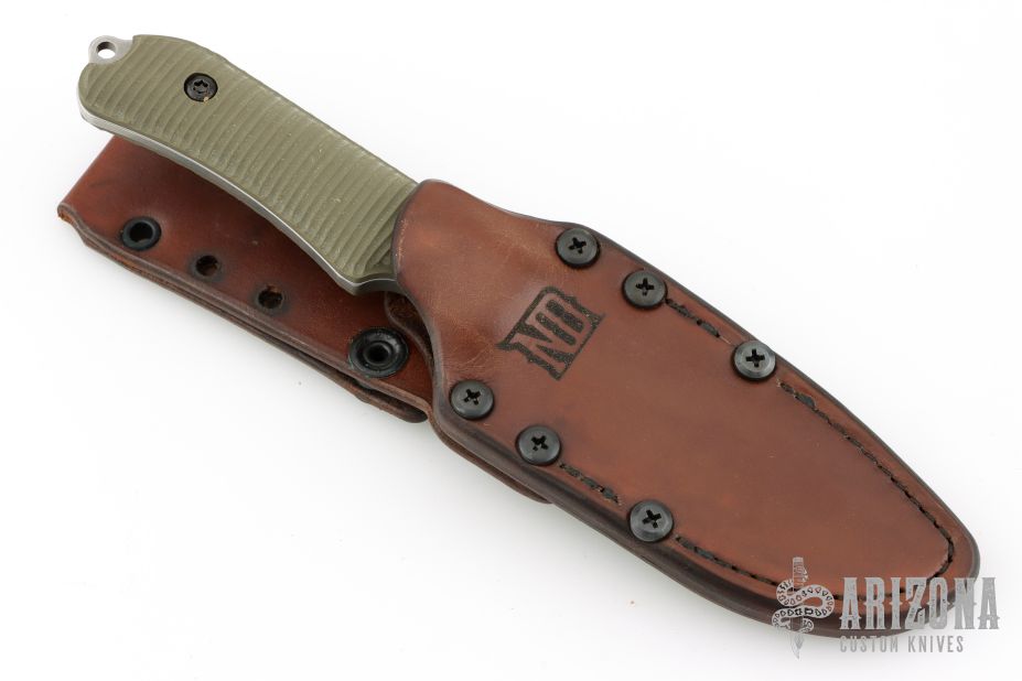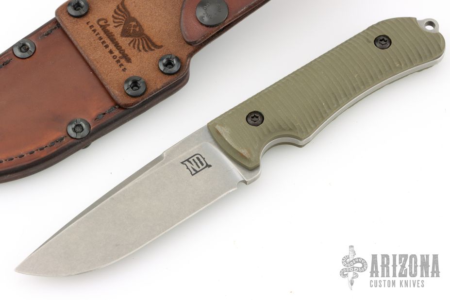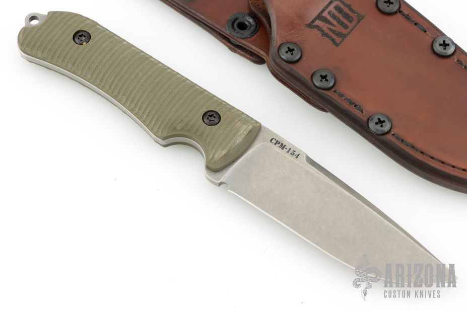 This Rancor fixed blade features a stonewashed, CPM-154 steel blade. The G10 scales are contoured and grooved for a very ergonomic, solid grip. This knife comes in a USA made Spec.Ops brand sheath with multiple attachment/carry options. This piece is new in box from Chad Nichols/Stray Dog Precision.