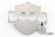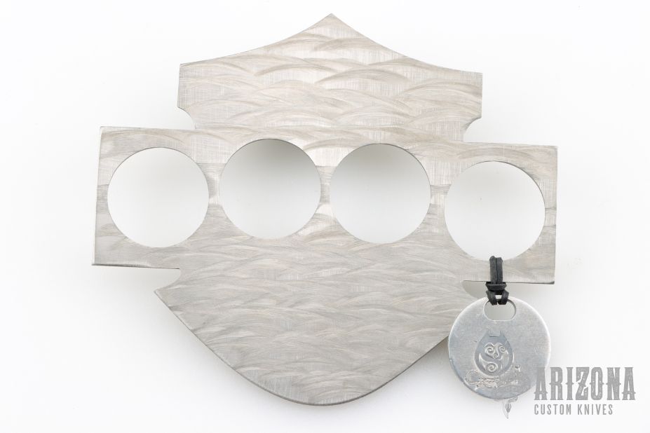The HD Knuck is 1/8" (.135) Textured stainless steel. This knuck has an extended front piece that curves to a point. Comfortable grip and rigid feel. Brand new from maker.