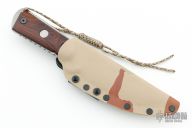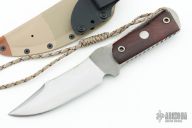 This 1911 Bowie by GHK features a satin finished blade with sharpened top edge, deferentially hardened and triple tempered, .226" blade stock and 1.627" blade depth, full tang construction. The handle has rosewood handles and a fileworked tang. Comes with a kydex sheath. New from maker.