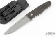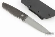 This Model 3 by Alex Weese features a bead blasted spear point blade with false top edge and notched thumbrest, .140" blade stock and 1.088" blade depth, full tang construction with lightning strike carbon fiber scales. The handle has one visible pin and one hidden pin. Comes with a kydex sheath with TekLok. New from maker. The Model 3 got the "Best Utility Fixed Blade" award at USN G11 2019.