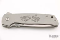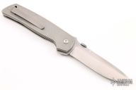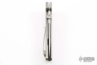 This ATCF from Bob Terzuola features a spear point blade with swedge, thumb disc and notched thumbrest. The handle is comprised of a full titanium frame and lockside liner over black backspacer, titanium tip up clip. Includes a padded zippered case. Numbered #42/75. Excellent Condition.