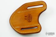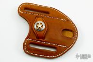 Leather Belt Sheath set up for a forward canted carry by A&M Leather. Silver and gold concho. New from maker.