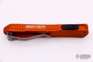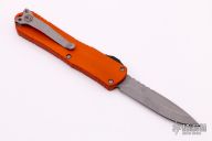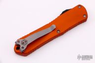 This Manticore-E by Heretic Knives features a battleworn single edged blade. The handle has a orange aluminum frame with battleworn stainless steel hardware and tip down clip. Comes with original box and papers. S/N # may differ from picture. New from maker.