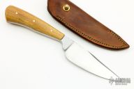 This clip point fixed blade by Paul Cooper features a 4" blade with distinctive scroll work, full tang with Osage Orange handle with copper pins. Steel is 1095 with a 1.25" blade depth, .25" thick at the bolster with a strong taper. Comfortable in the hand with good weight. Excellent condition, new from maker.