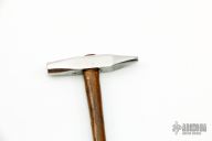 This Miniature Hammer by Bill Moran features a polished steel head with a wooden handle stamped "MORAN". The head is a little loose, but it won't come off. Has a couple light scratches, otherwise excellent condition.