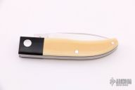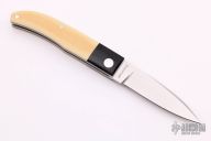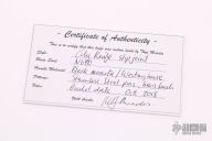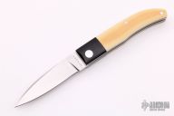 This slipjoint features a satin finished blade. The handle features black micarta bolsters complemented by Westinghouse covers over black liners and a steel backspacer. Includes the original box and a leather slip sheath. Excellent Condition.