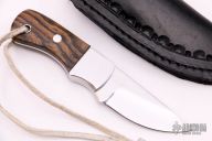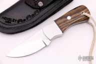 This 3 Finger Skinner by Wayne Hensley features a mirror polished blade, .135" blade stock and 1.095" blade depth, full tapered tang construction. The handle has polished stainless steel bolsters and bacote scales with black liners and stainless steel pin and lanyard hole. Includes a hand tooled black leather sheath. Brand new from the maker.