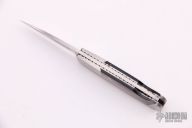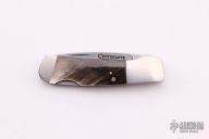This lockback by Centofante features a hand rub satin finished blade with nail nick. The handle has steel bolsters, black lip pearl scales and a stainless steel spring. Nice lockup and blade seating. #200 inside the spring. Light spotting is visible on the back spring. Scuffs are visible on the bolsters otherwise the knife is in good condition.