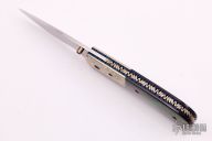 Today, my primary focus is making investment grade Damascus folding knives out of mosaic and composite bar Damascus. I use the best materials like blue fossil ivory, swordfish bill, diamonds. These creations are one-of-a-kind pieces made one at a time, by hand, by myself, and from start to finish. Continuing to make unique sculpted pieces that show my personal vision of this art, and that continue to escalate in value with time, is my long-term goal."