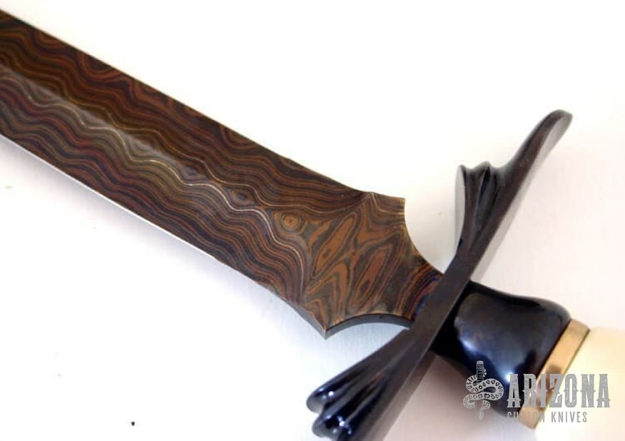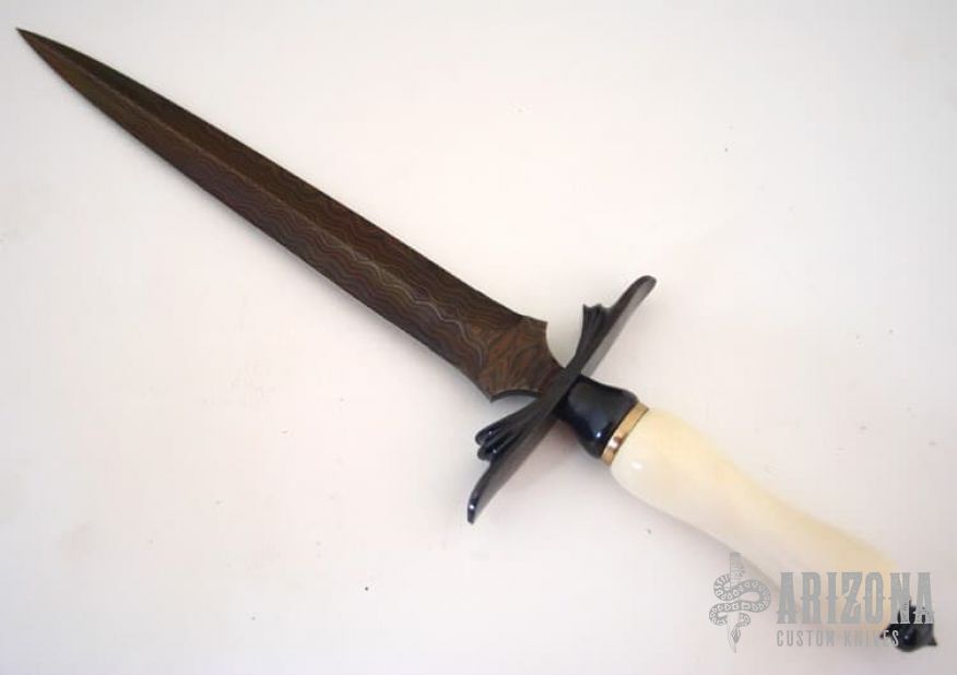Visit this maker's website: ARM-KO Knives. ABDUR- RASHEED MAHOMEDY, who prefers to be called just MAHOMEDY,by his friends, commenced Knife making some time in 1992. A time when his Country was getting ready to experience some dramatic changes.An avid collector initially, he travelled over 600 Kilometres to thoroughly acquaint himself with the craft of Knife making, which he new absolutely nothing about from a technical aspect. It must be made known that at that time there were no Clubs, nor any institutions where one could go in and learn "The CRAFT". To further compound matters, he was coming from a background where even his ancestors had absolutely no technical expertise, partly due to their merchant aspirations and to the then archaic law of "Job reservation" where men of colour were prohibited from even learning or practising "THE TECHNCAL TRADES".However, his dream was not to be relinquished to some "technical" obstacles. He relentlessly pursued this by attending an after- hours course at a Technical College to thoroughly acquaint himself with the different types of Steels, their properties and the divergent family of Stainless steels. Thereafter he attended another course, also part-time, in Jewellery Making to develop his embellishment skills. About this time, an experienced Knifemakers Guild of South Africa Member decided to commence a Club in Durban to teach and encourage other aspiring individuals about CUSTOM KNIFEMAKING.Mahomedy was one of THE DURBAN KNIFEMAKERS CLUB's inaugural Members and he has contributed tremendously to its progress both in an administrative capacity and in encouraging other tyros get on track.He first exhibited at the DURBAN EASTER KNIFE SHOW where he sold his first knives, a pair of Hunters beautifully finished in indigenous RED IVORY and Kudu Horn, to the same Collector. Given the speed of this initial transaction, the apparent immense appreciation of quality, effort and hard endeavour, the total absence of any wrangling, doubt or haggling and finally the prompt acceptance of individuality, all of this set a niche market for him to specialise in "COLLECTOR GRADE" KNIVES. The following year he won an award in the novice section for THE BEST BIRD and TROUT Knife.