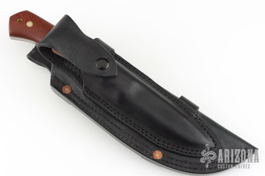 "These knives were formally known as the original "TRACKER" knives from the registered trademark, which I was the first to own & stamp on my blades during the '90's. After a brief retirement & the release of the 2003 Paramount Pictures film "The HUNTED" in which my Model "C" TRACKER knives were used & displayed, I resumed making my original TRACKER knife patterns but changed the name to avoid questionable trademark right disputes. In 2003 I was the first to coin the name "WSK" or Wilderness Survival Knife to this design. With over 22 years of refinement from personal service, feedback from customers & extensive field testing & use by top survival instructors & Elite military from around the world, my WSK knives have evolved into perfection & have repeatedly proven themselves in the field from real world survival to combat in many of our country's latest conflicts. Today you will see many variations by other makers but none can match the history, function & performance of my knives which are still the standard by which all others are judged. All the WSK knives I offer continue to be individually hand-crafted by myself from the contouring of the blades to the hand cut saw teeth to ensure the highest degree of craftsmanship & performance. Each blade is crafted from high carbon tool steel & skillfully deferentially hardened & tempered for superior edge holding & blade resilience. Handle grips are permanently fastened by stainless steel Loveless bolts with solid brass nuts, lined lanyard hole and guaranteed never to loosen under the hardest use. My sheaths are personally crafted for a custom fit from heavy leather that's been double stitched & finished for long wear. My field-grade knives retain all the same quality construction, differential heat treatment & performance as my high grade collectible knives but come with less costly cosmetic refinements for more practical field use."
