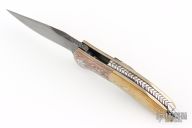 "From my workshop in Mount Gambier, South Australia, I researched far and wide in an attempt to find all I could on past and modern knife making techniques, quickly developing my own unique style. Within a few years I had developed my own distinct designs with folding knives including images and high relief carving of Australian fauna and flora, winning my first award in 2003 at the Melbourne Australian Knife Makers Guild Show. Since then I have come away with numerous awards throughout Australian knife shows achieving recognition here and overseas. In 2002 I began branching into forging my own carbon steel and Damascus blades and with the help of a fellow knife maker, Shawn McIntyre, I have honed my skills in Mosaic Damascus. Through the use of an old power hammer and the gas forge I built myself, I started to create my own style of Damascus containing distinctive pattern welded steel. In 2004, I worked along side Mike Peterson to create Japanese Mokume utilizing copper and iron. This lead to the fabrication of bowls and other traditional Japanese pieces, although knife making has remained my passion. In 2003 I became a member of the Australian Knife makers Guild and in 2006 was elected the South Australian representative of the Guild."