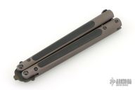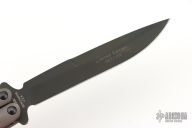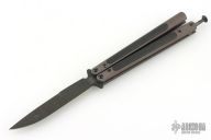 This Model 42-01 Balisong by Benchmade features a black boron carbide spear point blade with swedge. The handles are black aluminum with black G-10 inlays with spring T latch on pommel. Marked "Limited Edition 003/100" on blade. Includes a original clamshell box. A rare and hard to find piece. Has some light scuffs, otherwise excellent condition.