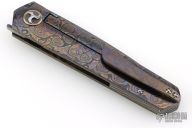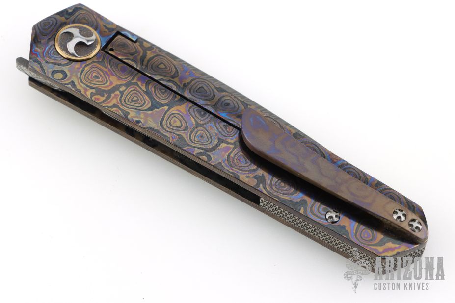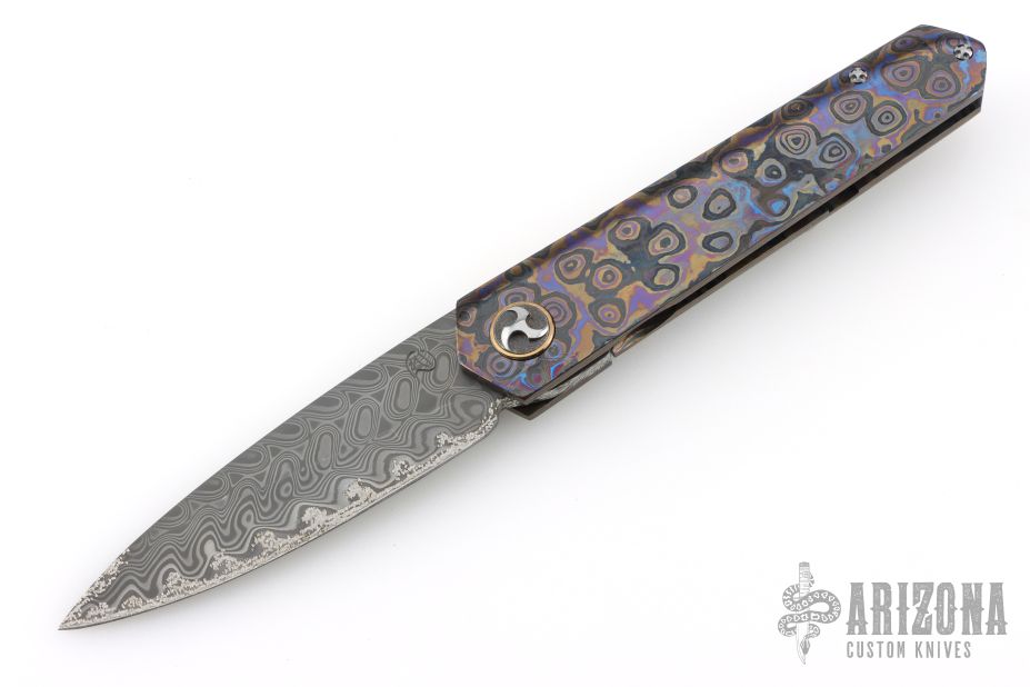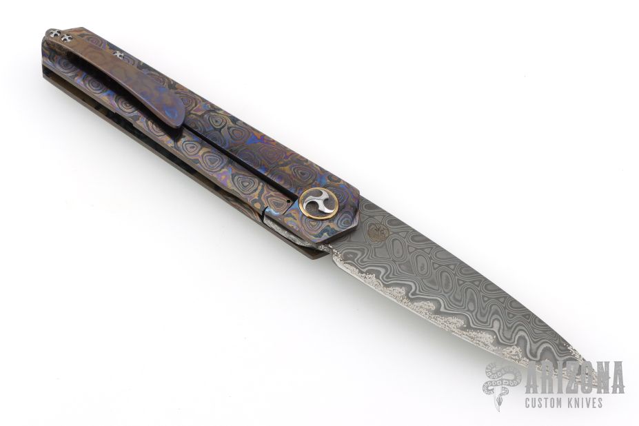 " I was born in Australia and trained as a Jeweler.I have been doing JuJutsu since I was 6 years old and developed my own style in 1990. I have a 7th Dan Black belt. I also study Batto, live sword cutting and have a 3rd Dan. I moved to Japan to live in 1986 and have been creating knives since 1993.In that time I have won many awards including best in show and best art knife at shows in America, Australia and Japan. My work has been published in many magazines in America, Australia, France, Italy, Japan and Russia. I do all the work myself, but I don't make my own steel. I prefer to use Damasteel, ZDP-189, VG-10 and ZDP-189 VG-10 san mai. Anything that looks like gold on my knives is either 18k or 24k gold. I like to use rare materials such as mammoth tusk, titanium, gold, silver and many others. Each knife that I create is a one of a kind and a work of love which I hope will survive the passing of time for many, many generations. That is why I use materials that are impossible to or very resilient to rust. My knifes often tell a story and have a Japanese theme to them. Probably a combination of my love of Japan, its history, mythology and the 35 years that I have been here in Japan. I also like to hide many interesting things on my knives as part of the voyage of discovery of my art."