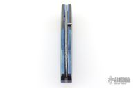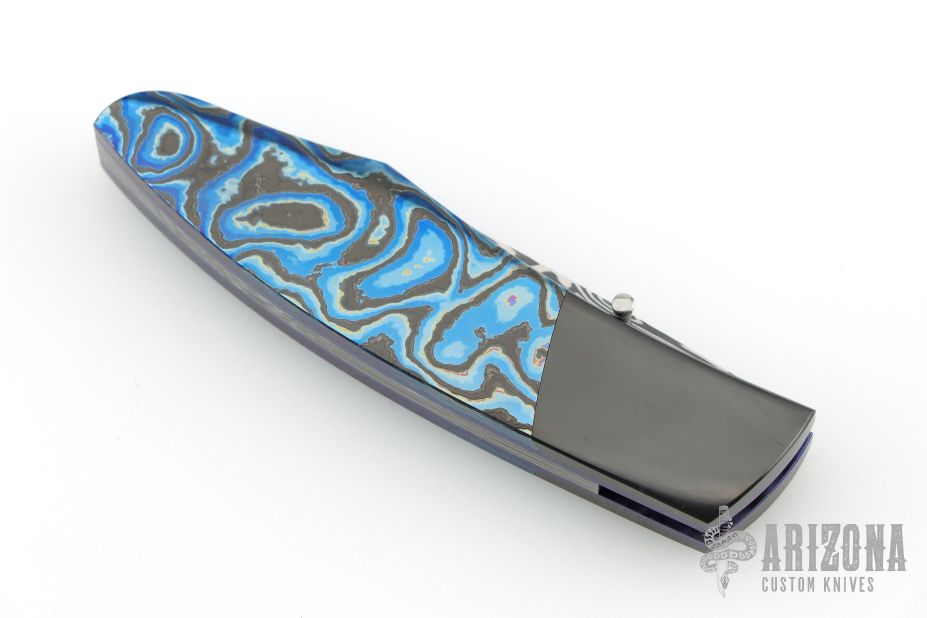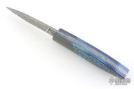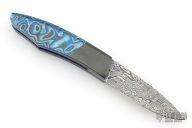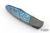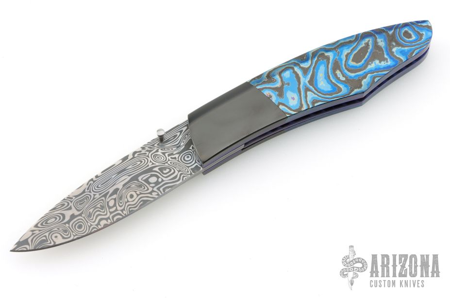 My choice of materials for my knives are natural and exotic handle materials such as pearl, bone, ivory or fine burlwood combined with a Damascus blade. All my knives are made by stock-removal, free hand ground and hand finished. I do not work off of set patterns, but from a simple drawing. This takes a little more time but it also allows me to be more creative and have full control to make slight changes to each custom knife, obviously as result no two knives are ever identical. My first knife was it was once described by another knife maker as organic in design. My basic designs still reflect that organic flow, graceful curves and a minimum of straight lines. I maintain sole authorship on all my knives with the exception of the Damascus I use and heat-treating of stainless steels. Like many makers I began with fixed blades, as I gained skills I moved into folders, then autos. Lately I have taken to building my folders with all the screws hidden."