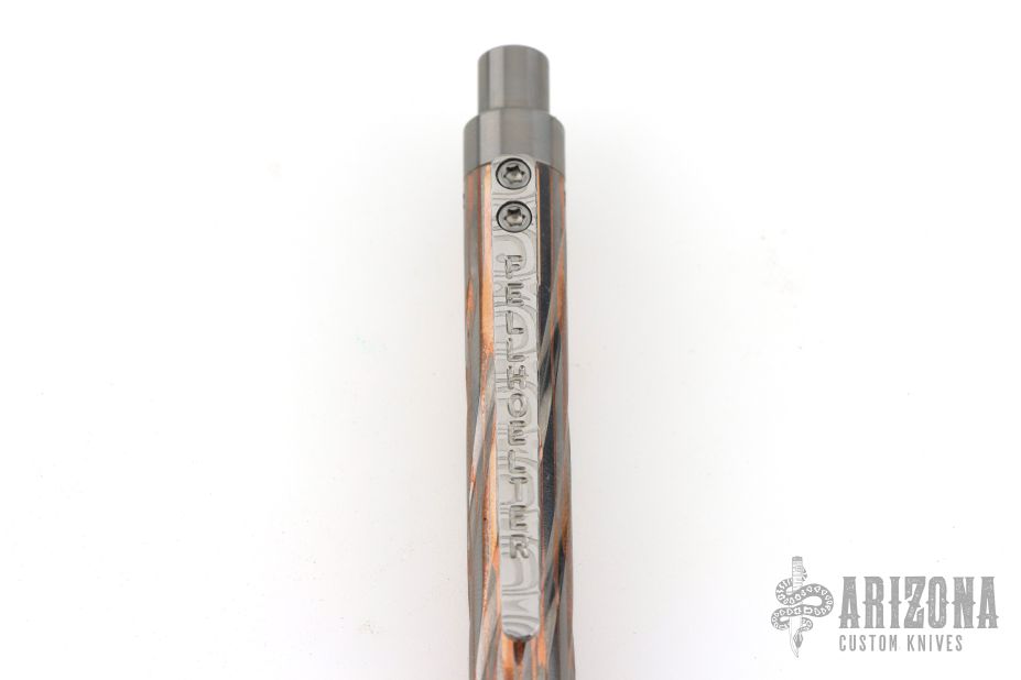 This unique click-action pen is made from super conductor with a Damasteel clip. Pen is new from Mr. Fellhoelter and comes in original plastic storage tube.
