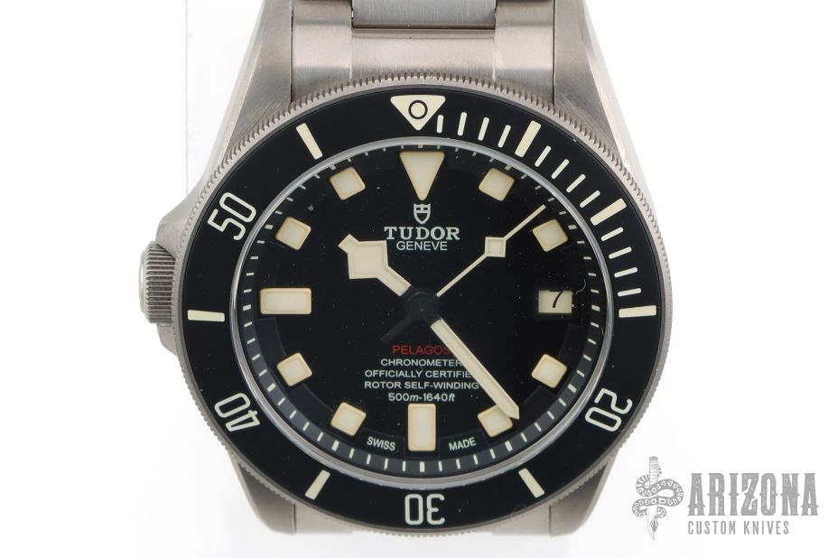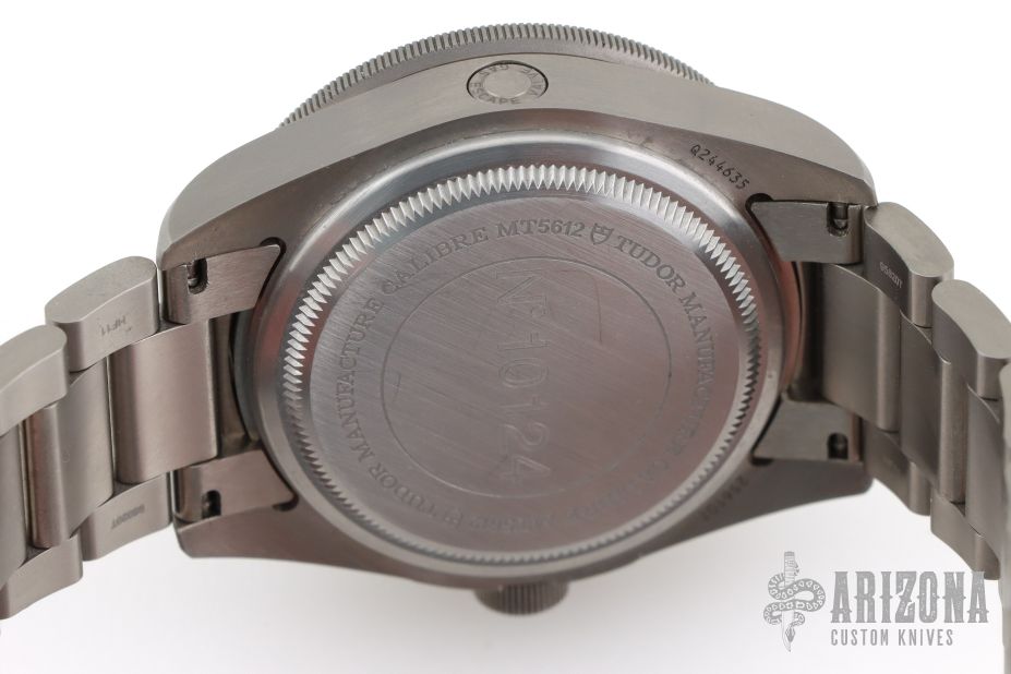 Titanium screw-down winding crown at 9 o’clock with the TUDOR logo in relief