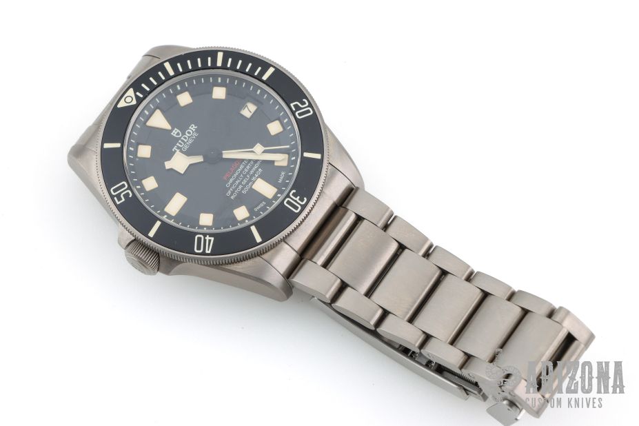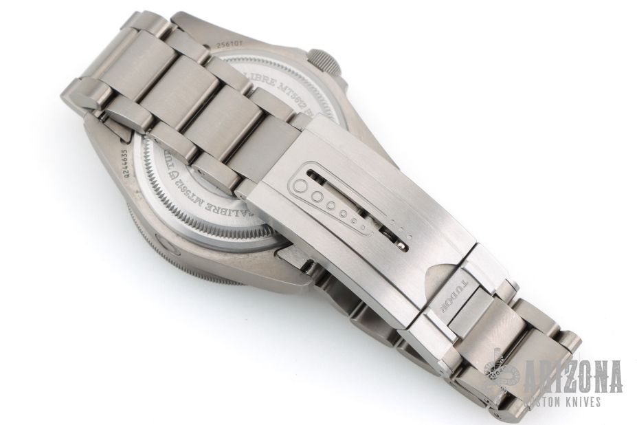 Titanium bracelet with folding clasp and safety catch in steel with bracelet extension system developed and patented by TUDOR