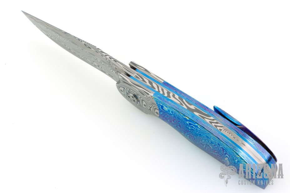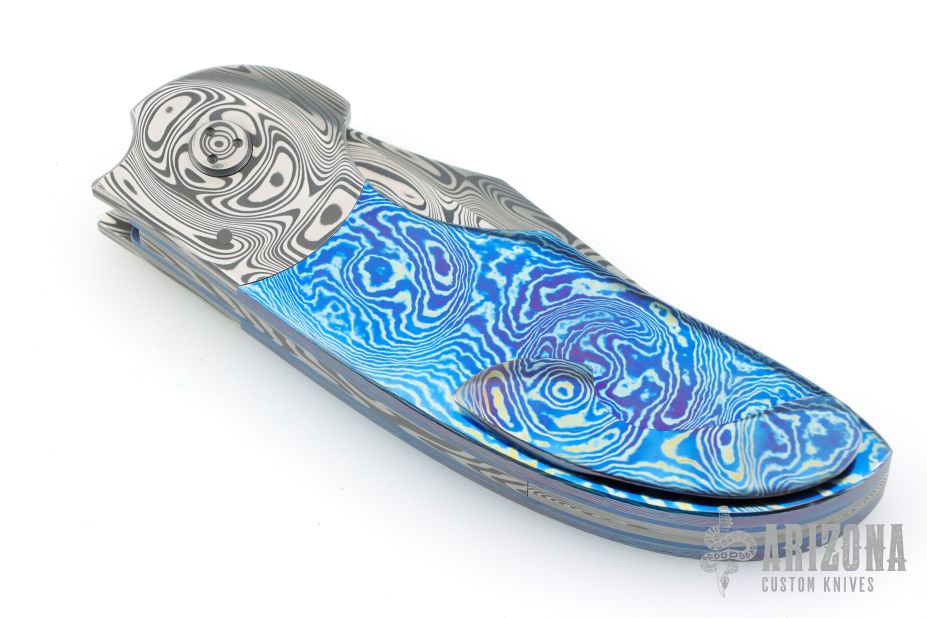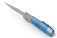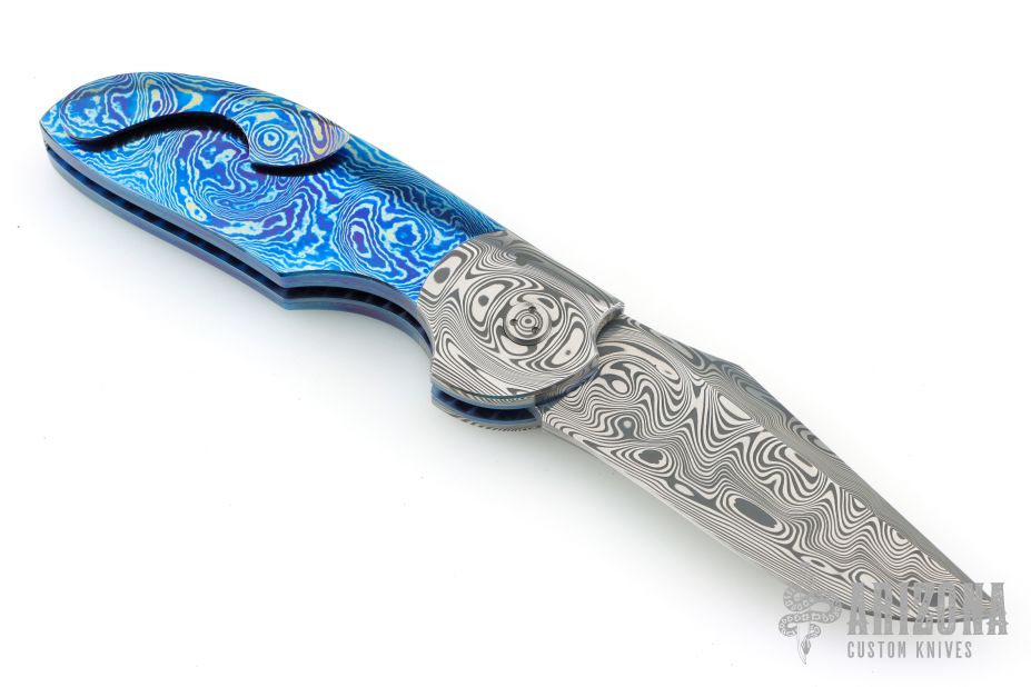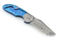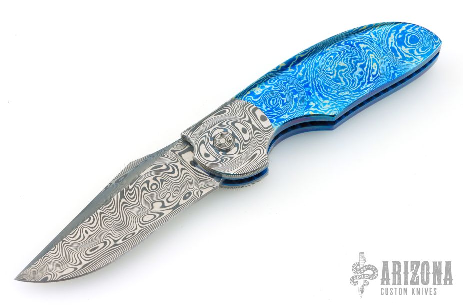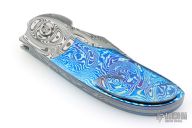 My choice of materials for my knives are natural and exotic handle materials such as pearl, bone, ivory or fine burlwood combined with a Damascus blade. All my knives are made by stock-removal, free hand ground and hand finished. I do not work off of set patterns, but from a simple drawing. This takes a little more time but it also allows me to be more creative and have full control to make slight changes to each custom knife, obviously as result no two knives are ever identical. My first knife was it was once described by another knife maker as organic in design. My basic designs still reflect that organic flow, graceful curves and a minimum of straight lines. I maintain sole authorship on all my knives with the exception of the Damascus I use and heat-treating of stainless steels. Like many makers I began with fixed blades, as I gained skills I moved into folders, then autos. Lately I have taken to building my folders with all the screws hidden."