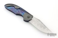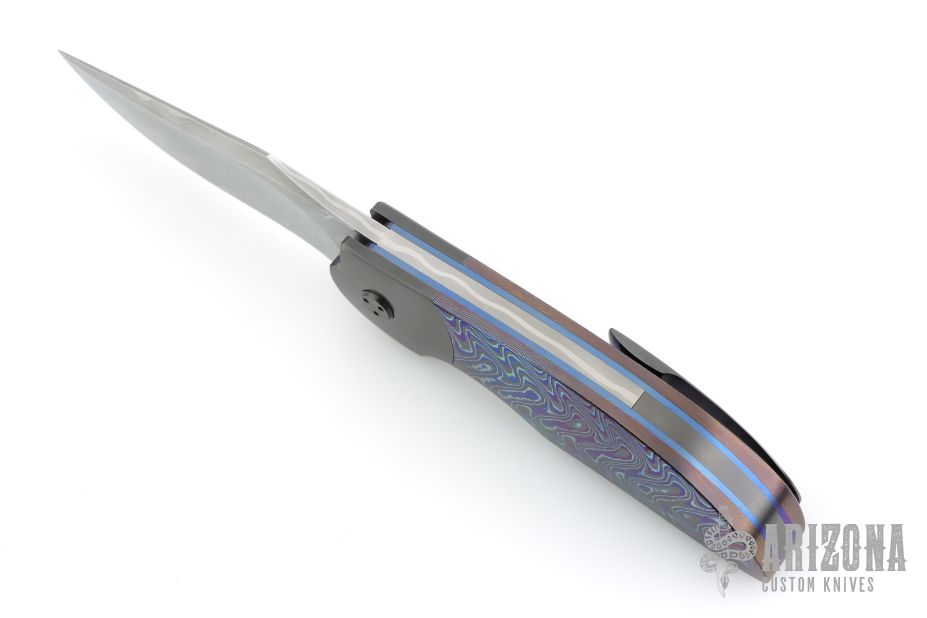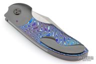 My choice of materials for my knives are natural and exotic handle materials such as pearl, bone, ivory or fine burlwood combined with a Damascus blade. All my knives are made by stock-removal, free hand ground and hand finished. I do not work off of set patterns, but from a simple drawing. This takes a little more time but it also allows me to be more creative and have full control to make slight changes to each custom knife, obviously as result no two knives are ever identical. My first knife was it was once described by another knife maker as organic in design. My basic designs still reflect that organic flow, graceful curves and a minimum of straight lines. I maintain sole authorship on all my knives with the exception of the Damascus I use and heat-treating of stainless steels. Like many makers I began with fixed blades, as I gained skills I moved into folders, then autos. Lately I have taken to building my folders with all the screws hidden."