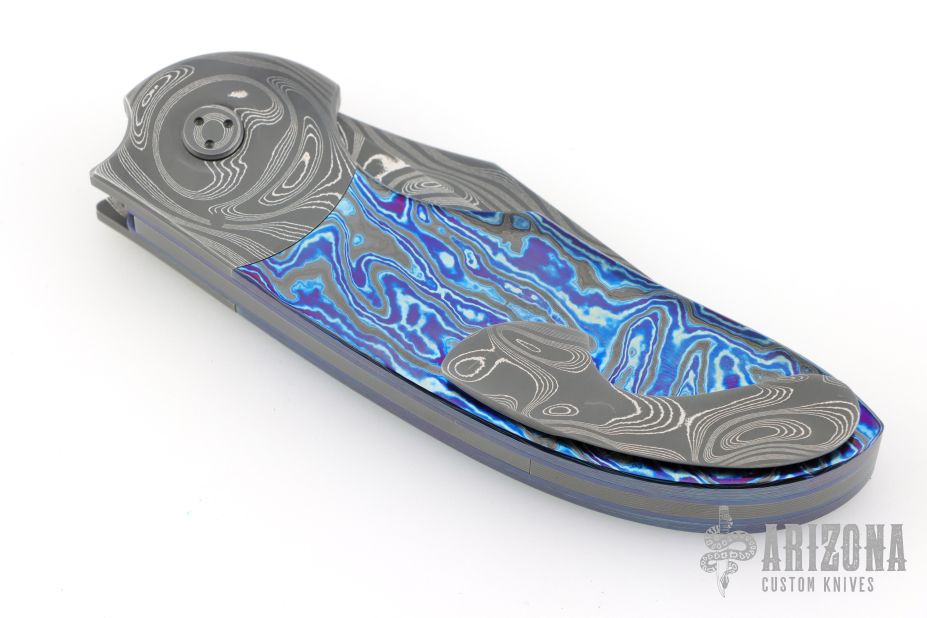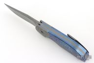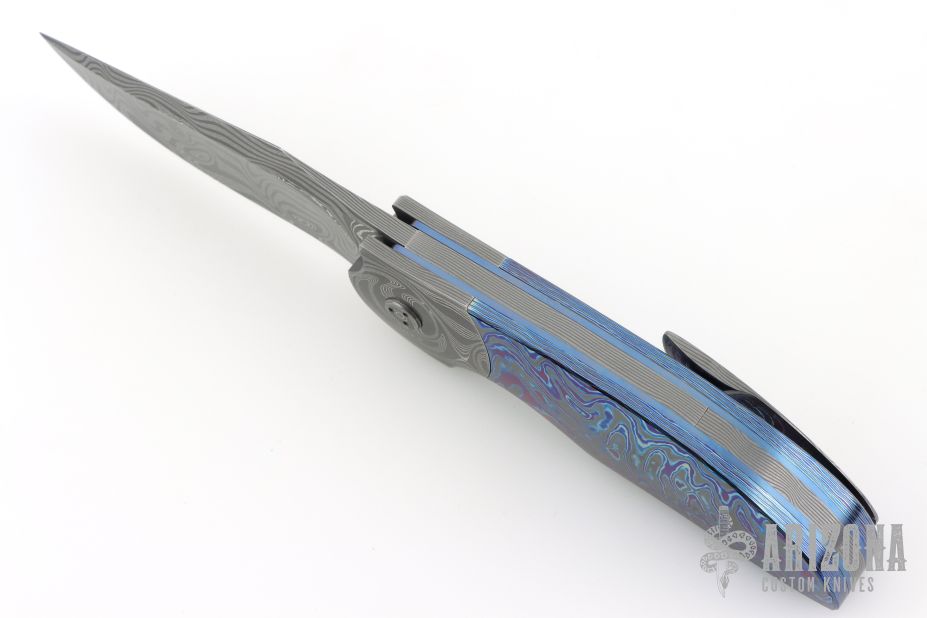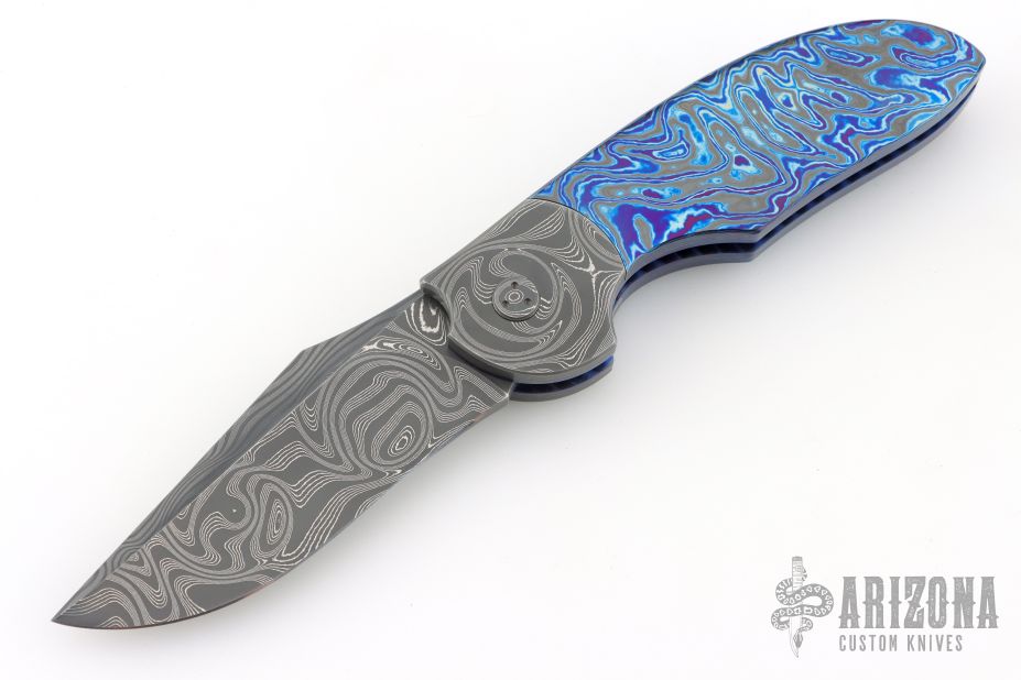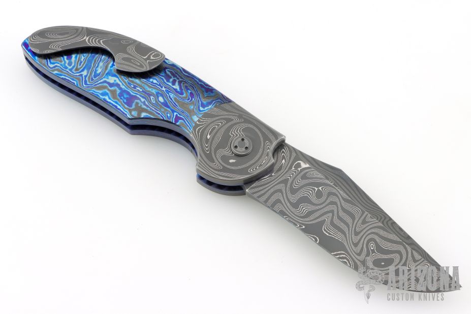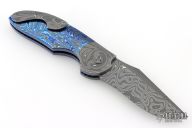 My choice of materials for my knives are natural and exotic handle materials such as pearl, bone, ivory or fine burlwood combined with a Damascus blade. All my knives are made by stock-removal, free hand ground and hand finished. I do not work off of set patterns, but from a simple drawing. This takes a little more time but it also allows me to be more creative and have full control to make slight changes to each custom knife, obviously as result no two knives are ever identical. My first knife was it was once described by another knife maker as organic in design. My basic designs still reflect that organic flow, graceful curves and a minimum of straight lines. I maintain sole authorship on all my knives with the exception of the Damascus I use and heat-treating of stainless steels. Like many makers I began with fixed blades, as I gained skills I moved into folders, then autos. Lately I have taken to building my folders with all the screws hidden."